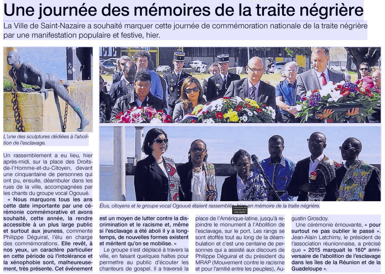 Lors de la commémoration officielle de la traite, de l’esclavage et de leurs abolitions, la LDH et le MRAP ont fait une intervention commune devant le monument nazairien à l’esclavage :