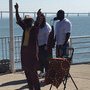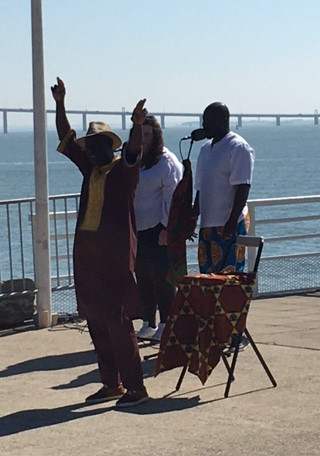 devant le monument à l’abolition de l’esclavage