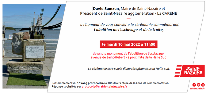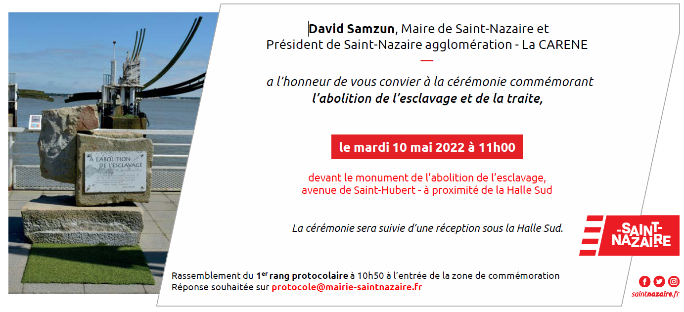 Le comité MRAP d la région nazairienne invite à participer – comme chaque année – à la cérémonie officielle, devant e monument à la mémoire de l’esclavage conçu par Jean-Claude Mayo et érigé en 1989.