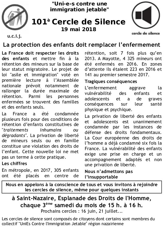101ème cercle de silence : La protection des enfants doit remplacer l’enfermement