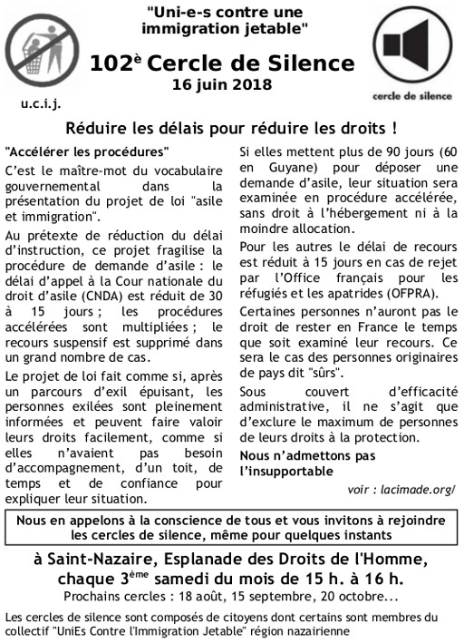 102ème cercle de silence : Réduire les délais pour réduire les droits