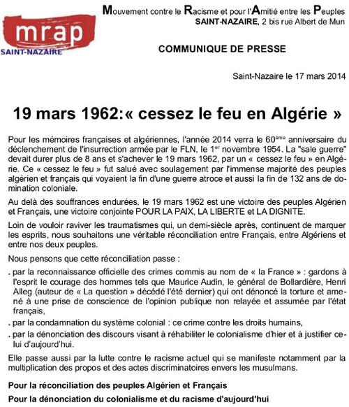 Accueil > Amitié entre les peuples > Maghreb > 19 mars 1962 : cessez le feu en Algérie