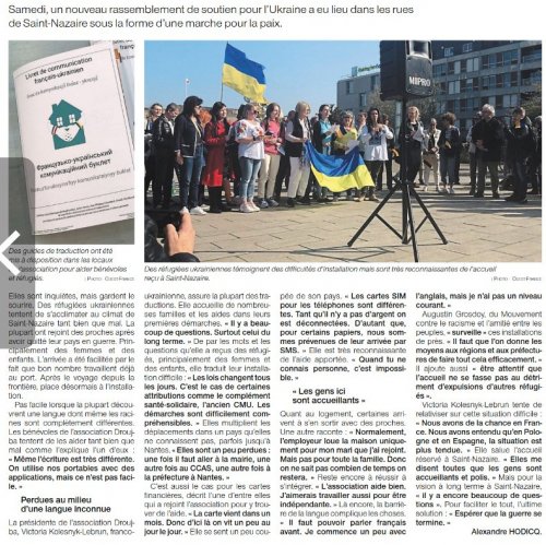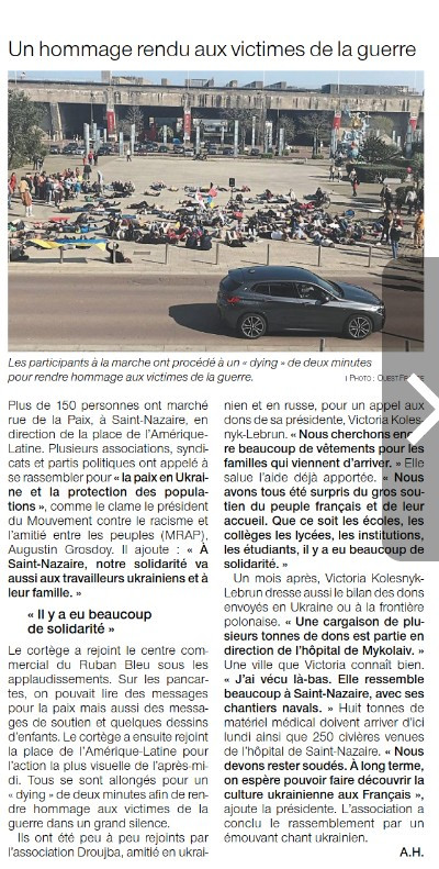A Saint-Nazaire, l’association "Droujba" ("Amitié"), les autorités, les organisations de la société civile sont mobilisées pour accueillir les réfugié·e·s et aider l’Ukraine. Nous appelons chacune et chacun à se joindre à ces initiatives solidaires.