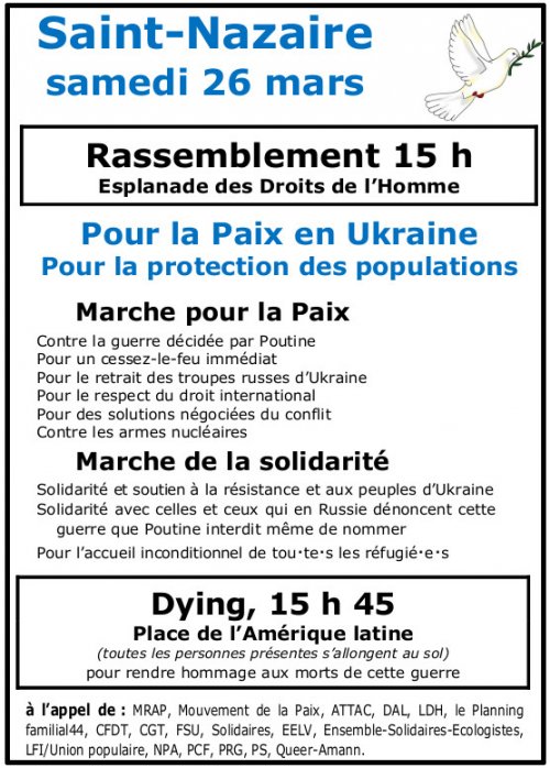 26 mars : non à la guerre et à l’occupation de l’Ukraine