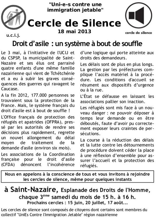 Accueil > Migrations > Cercles de silence > 43ème cercle de silence : Droit d’asile, un système à bout de souffle