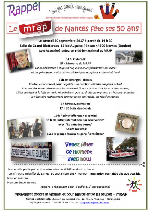 Pour fêter ses 50 ans, le comité local du MRAP de Nantes invite