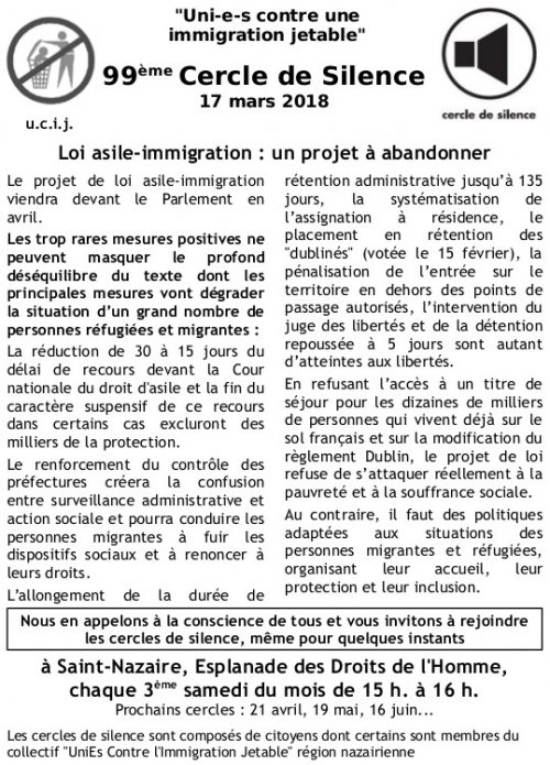 99ème cercle de silence : loi asile-immigration, un projet à abandonner