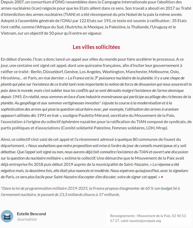 Accueil > Amitié entre les peuples > Paix > Appel pour l’interdiction des armes nucléaires