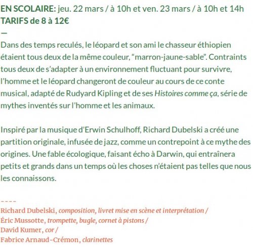 Dans le cadre des semaines d’éducation contre le racisme, le théâtre Athénor propose un spectacle pour les scolaires : Le Léopard et le Chasseur, jeudi 22 mars à 19h30 à l’espace Bois-Savary (82 rue du Bois-Savary)