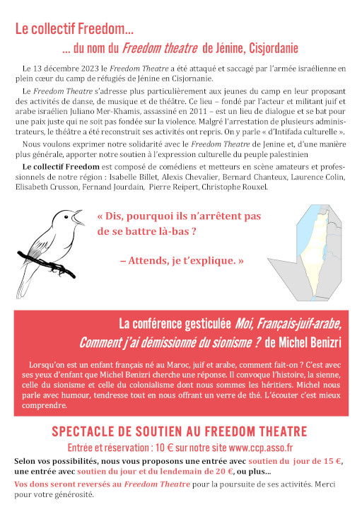 Conférence gesticulée de Michel Benizri avec le soutien des amis du théâtre de la Liberté de Jénine