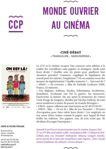 Le samedi 6 avril, le centre de Culture Populaire consacre son ciné-débat aux travailleurs sans-papiers.