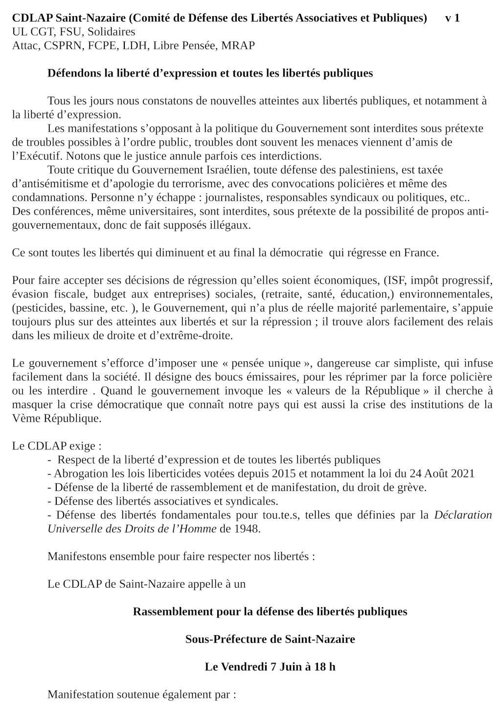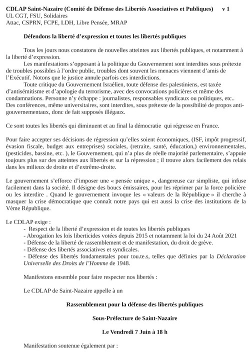 Accueil > Vivre ensemble > [CDLAP] Pour la défense des libertés publiques