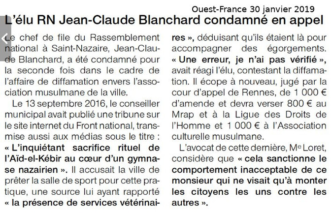 Confirmation en appel de la condamnation de M. Blanchard