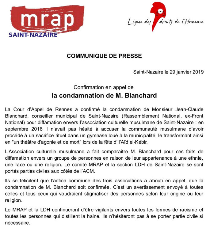 Accueil > Contre le racisme > Action juridique > Confirmation en appel de la condamnation de M. Blanchard