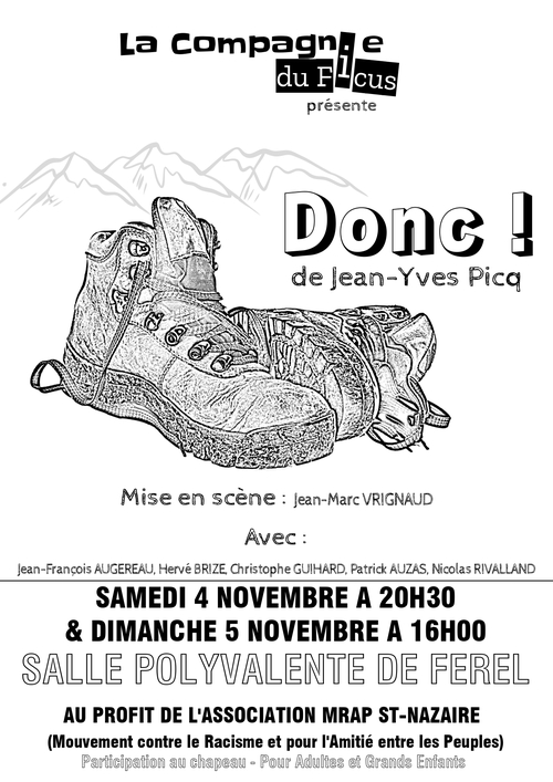 Le comité MRAP de la région nazairienne sera donc présent les 4 et 5 novembre pour la représentation de DONC" de Jean-Yves Picq. Il remercie la compagnie du Focus et Jean-Marc Vrignaud pour leur initiative.