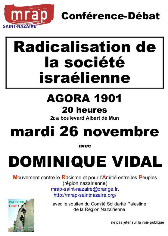 Accueil > Amitié entre les peuples > Palestine > Débat avec D. Vidal : Pourquoi la société israélienne s’est-elle radicalisée ?