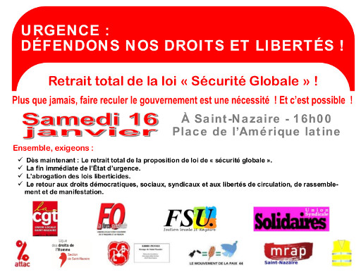 Manifestation à Saint-Nazaire, samedi 16 janvier