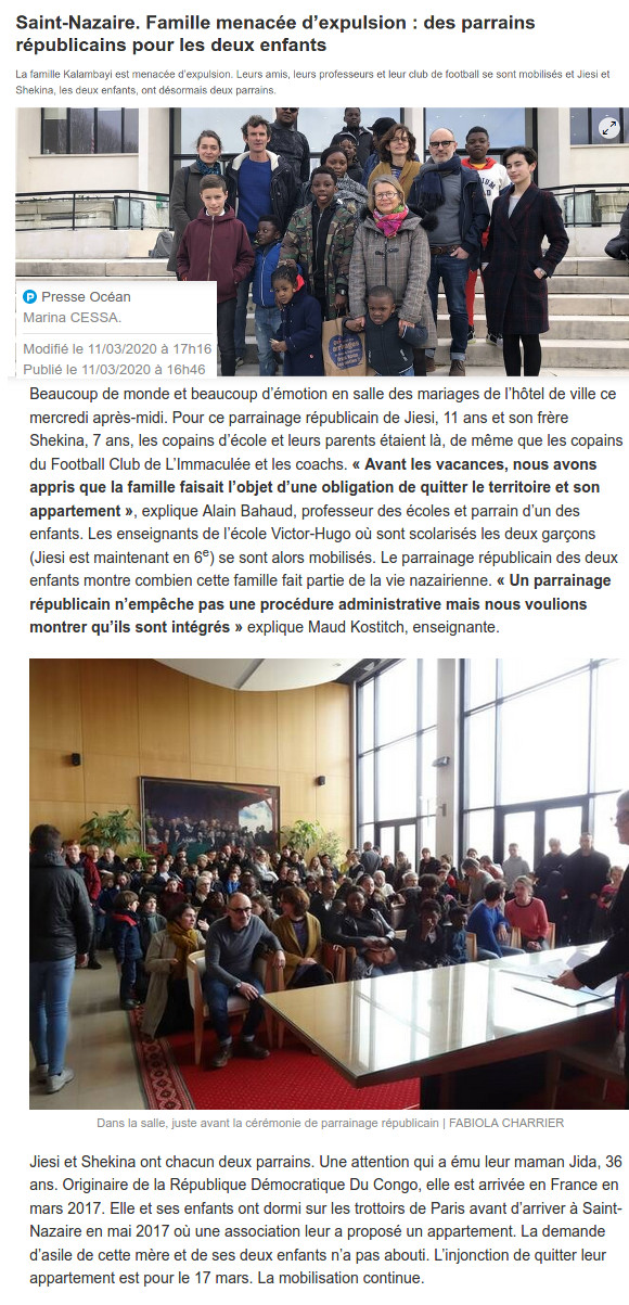 La famille Kalambayi est menacée d’expulsion. Leurs amis, leurs professeurs et leur club de football se sont mobilisés et Jiesi et Shekina, les deux enfants, ont désormais deux parrains.