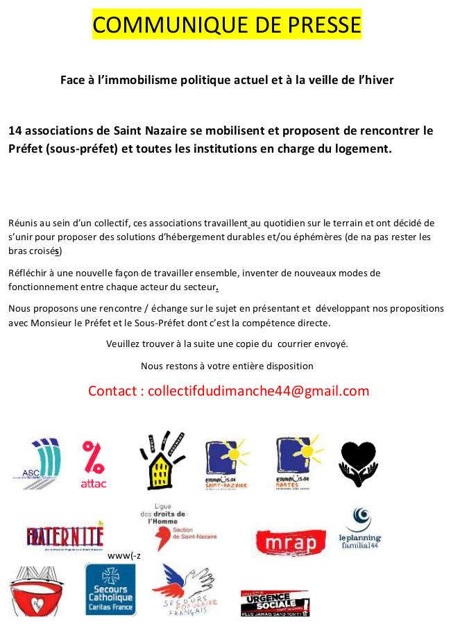 Quatorze associations de Saint-Nazaire se mobilisent et proposent de rencontrer le