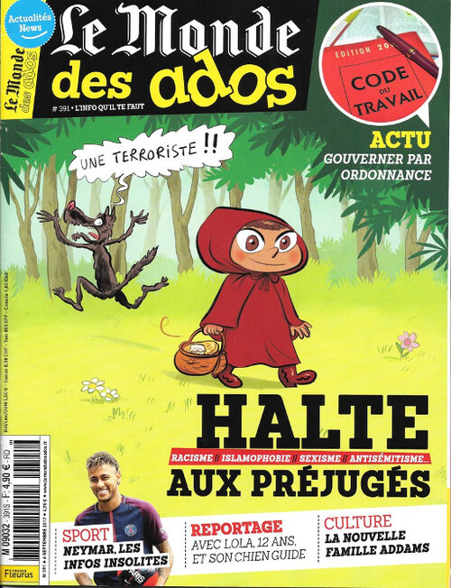 Le numéro du 7 septembre du Monde des Ados publie un dossier "Halte aux préjugés, racisme, islamophobie, sexisme, antisémitisme..."