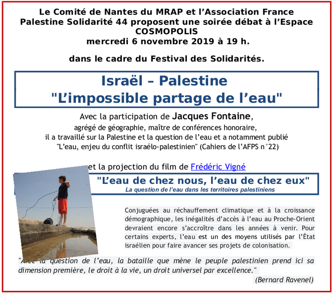Le comité de Nantes du MRAP et l’AFPS44 proposent une soirée-débat à l’espace Cosmopolis le mercredi 6 novembre 2019