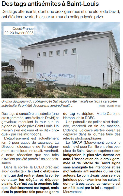 [MRAP] Le MRAP indigné par les tags antisémites sur Saint-Louis