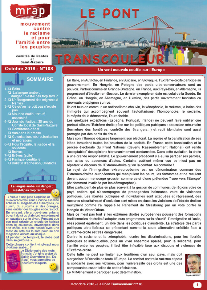 Accueil > le MRAP > le Pont Transcouleur > Le Pont Transcouleur n° 108, octobre 2018