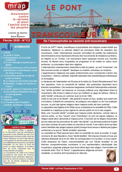 Accueil > le MRAP > le Pont Transcouleur > Le Pont Transcouleur n° 112, février 2020