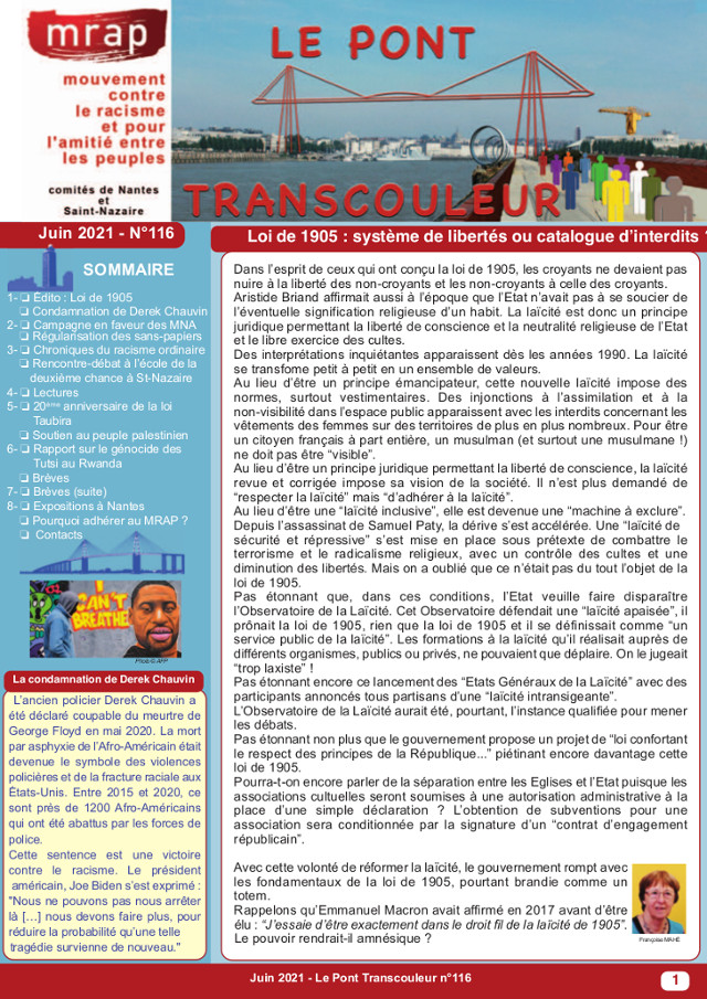 Accueil > le MRAP > le Pont Transcouleur > Le Pont Transcouleur n° 116, juin 2021