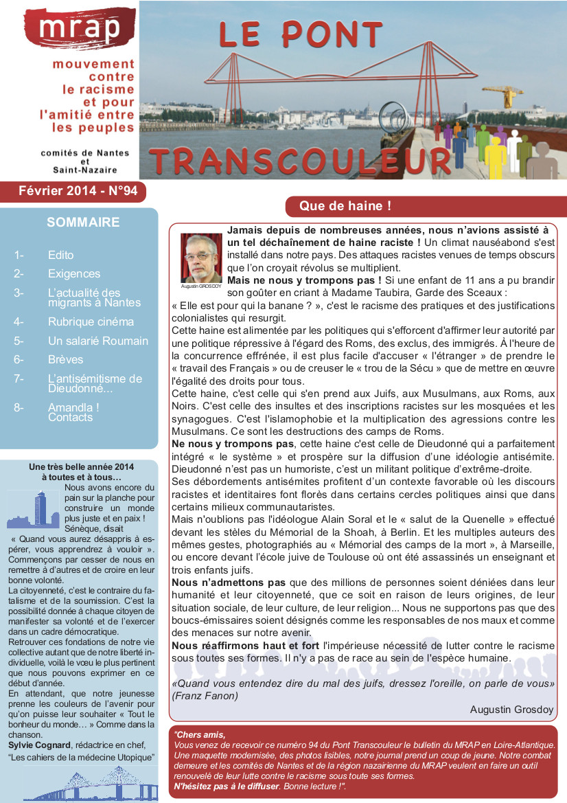 Accueil > le MRAP > le Pont Transcouleur > Le Pont Transcouleur n° 94, février 2014