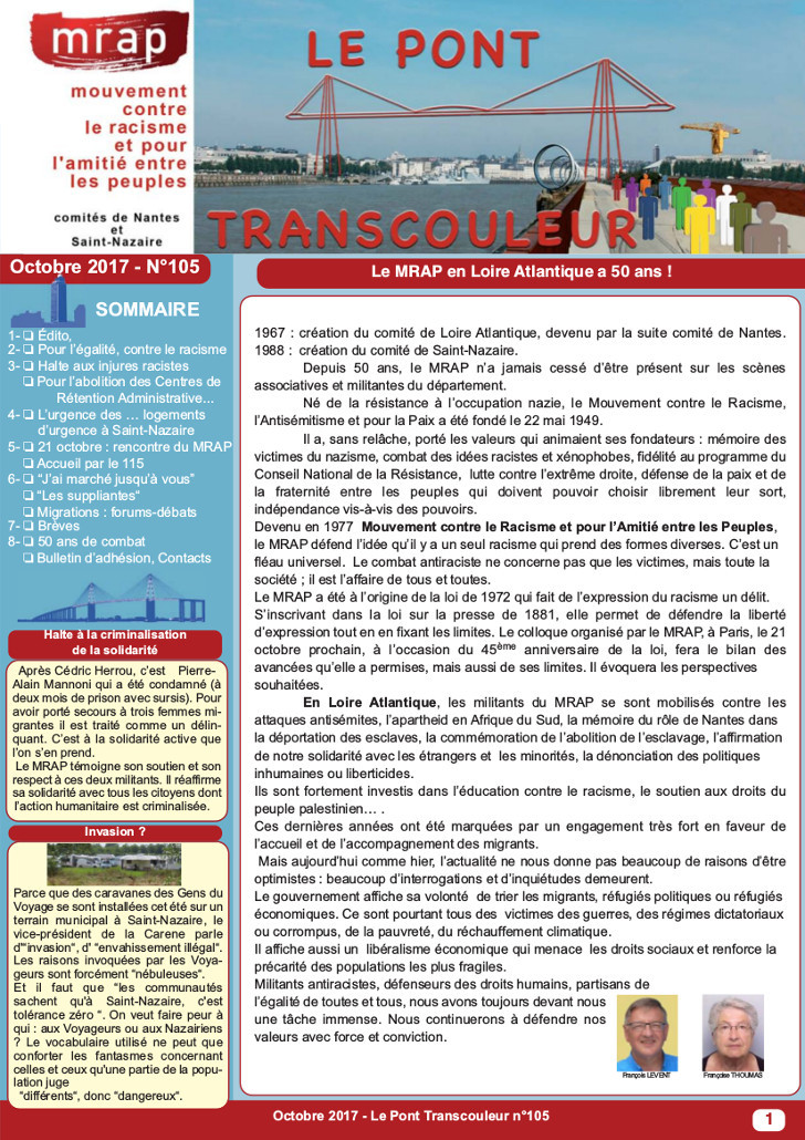 Accueil > le MRAP > le Pont Transcouleur > Le Pont Transcouleur n°105, octobre 2017
