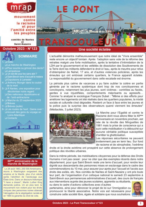 Accueil > le MRAP > le Pont Transcouleur > Le Pont Transcouleur n°123, octobre 2023