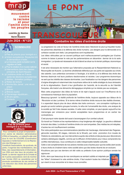 Accueil > le MRAP > le Pont Transcouleur > Le Pont Transcouleur n°125, juin 2024