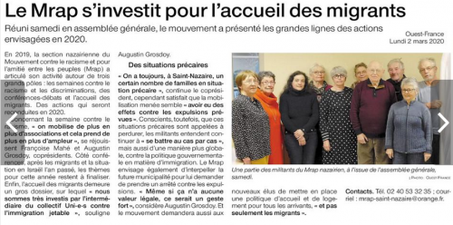 Le comité de la région nazairienne du MRAP a tenu son assemblée générale annuelle le samedi 29 février 2020 mars 2019 à la salle municipale du Jardin des Plantes (Saint-Nazaire).