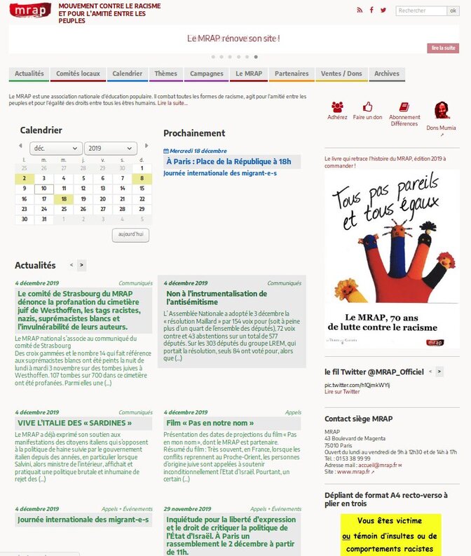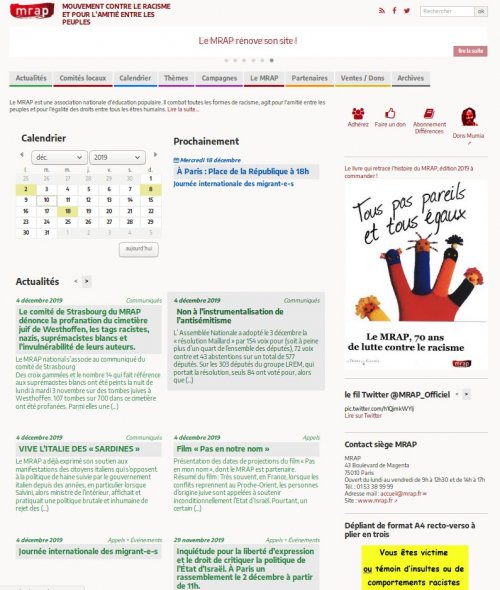 En cette fin d’année, le Mrap modifie l’organisation de son site national.