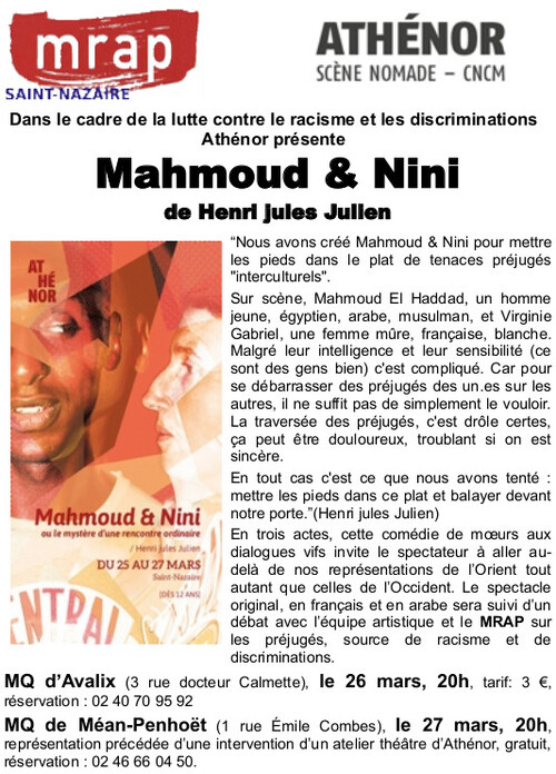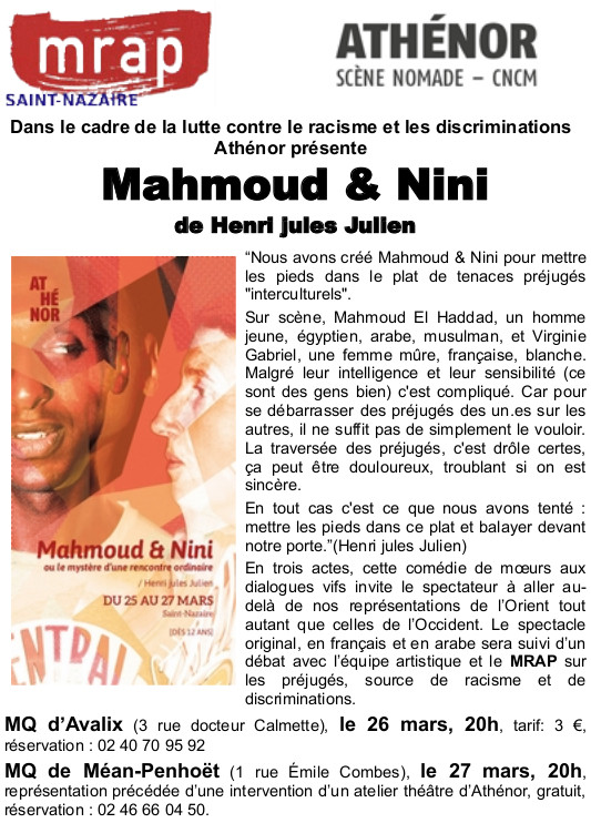 Dans le cadre de la lutte contre le racisme et les discriminations Athénor présente "Mahmoud & Nini" de Henri jules Julien.