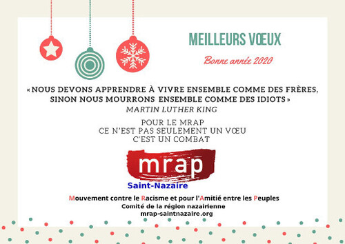 Le comité MRAP de la région nazairienne présente ses meilleurs vœux pour l’année 2020 à ses visiteurs.