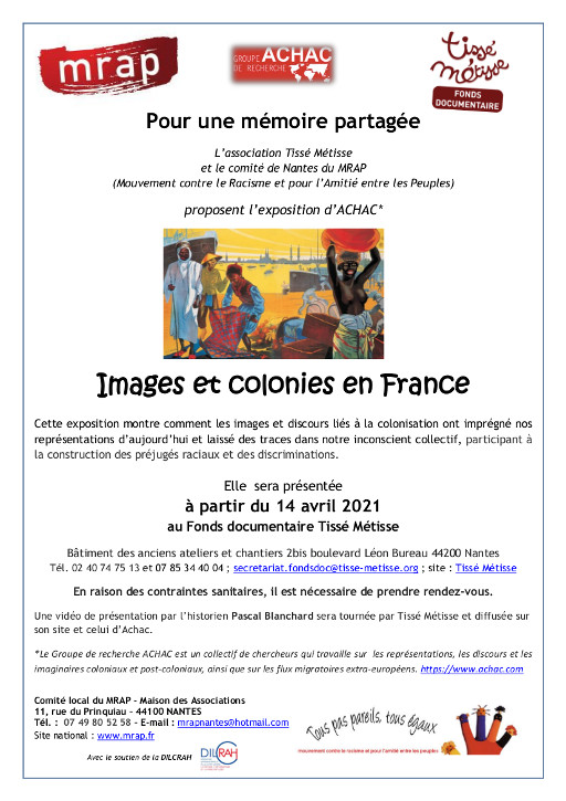 Pour une mémoire partagée, l’assocation Tissé Métisse et le comité de Nantes du MRAP proposent une expositions de l’ACHAC : "Images et colonies en France" à partir du 14 avril 2021.