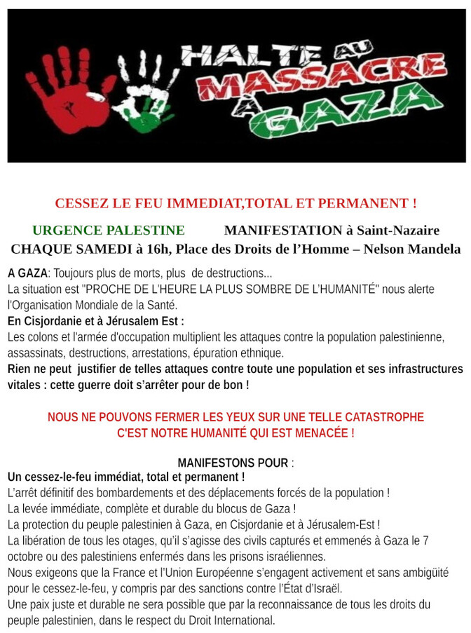 Palestine : Cessez-le feu immédiat !samedi 9 mars 2024