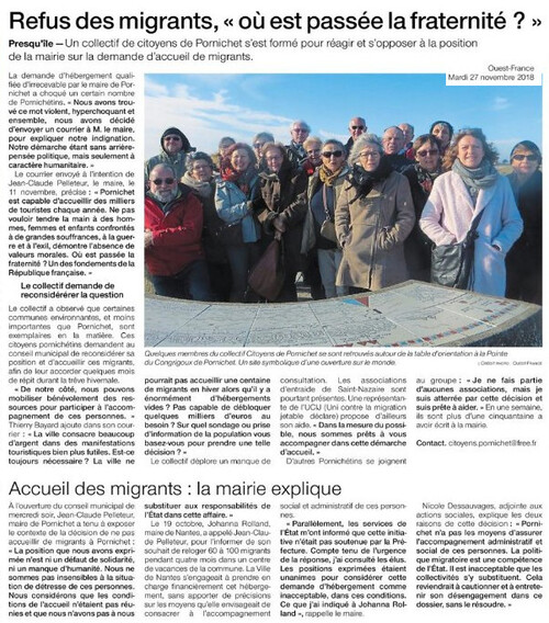 Pornichet : Refus des migrants, "où est passée la fraternité ?"