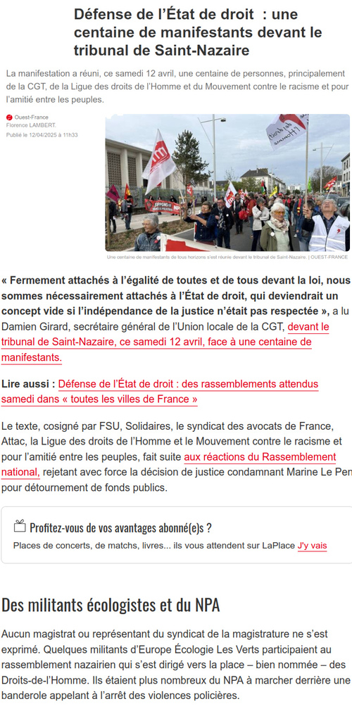 Appel à rassemblements le samedi 12 avril 2025 partout en France, à St-Nazaire devant le Tribunal,