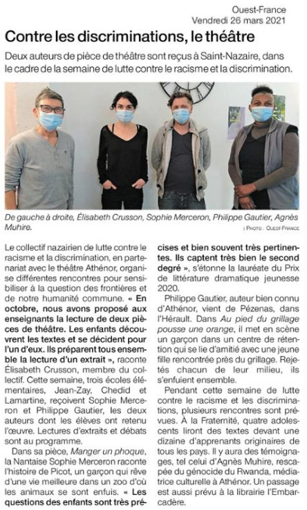 Dans le cadre des semaines 2021 d’éducation contre le racisme et les discriminations, le théâtre Athénor a reçu deux auteurs de pièces de théâtre.