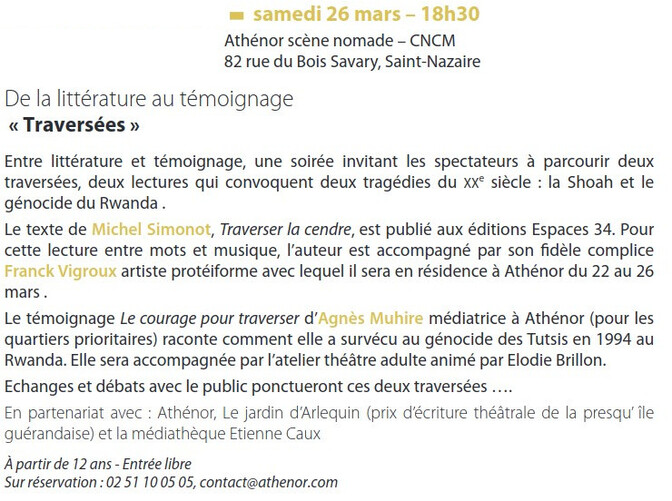 Samedi 26 mars à Athénor-Scène nomade, de la littérature aux témoignages.