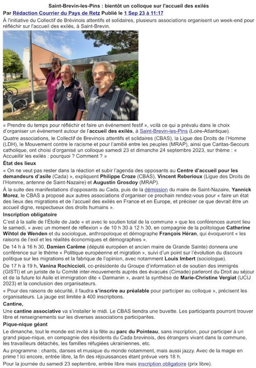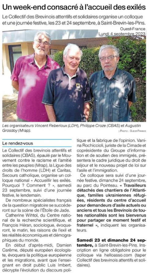 [Saint-Brévin] Colloque national "Accueillir les exilé·es Pourquoi ? Comment ?"
