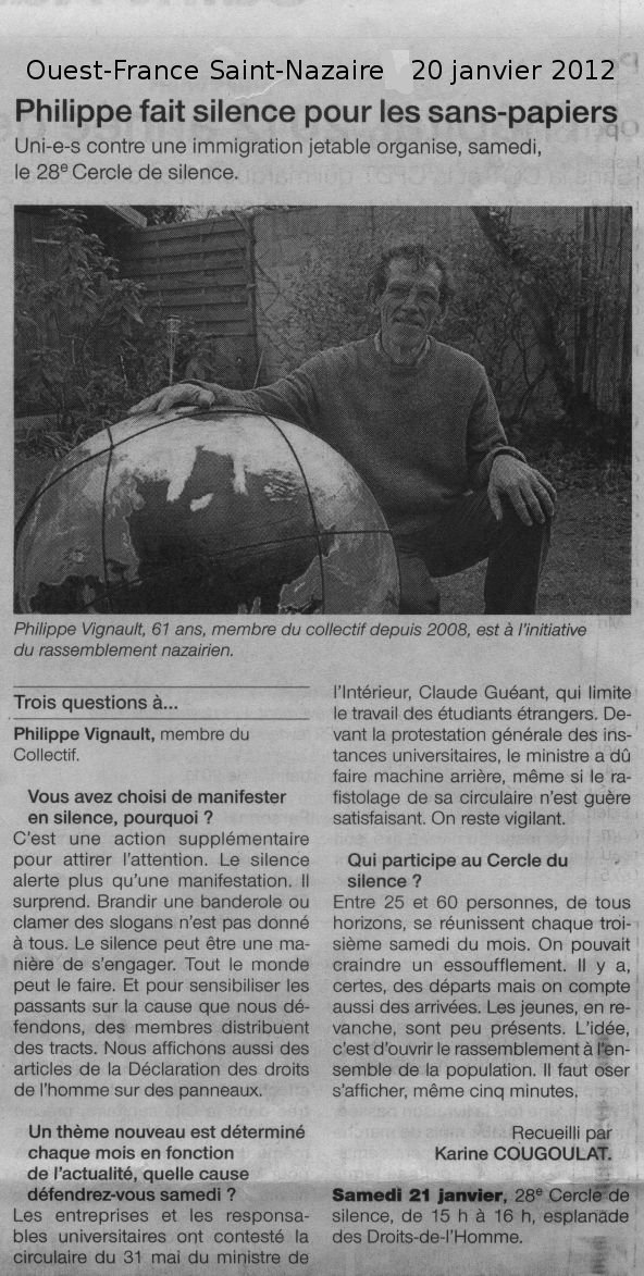 Ouest-France du 20 janvier 2012 (édition Saint-Nazaire-La Baule)