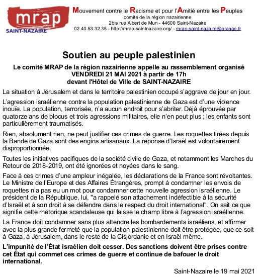 Accueil > Amitié entre les peuples > Palestine > Soutien au peuple palestinien
