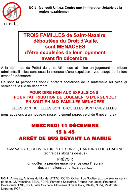 Accueil > Migrations > Situation des migrants > Trois familles menacées d’expulsion de leur logement
