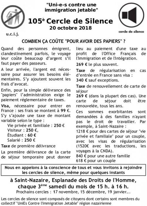 [UCIJ] 105ème cercle de silence : "Combien ça coûte pour avoir des papiers"