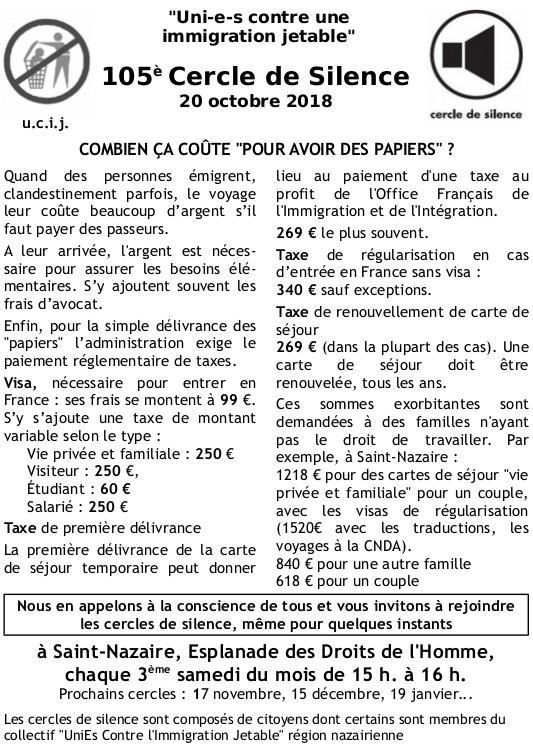 Accueil > Migrations > Cercles de silence > [UCIJ] 105ème cercle de silence : "Combien ça coûte pour avoir des papiers"