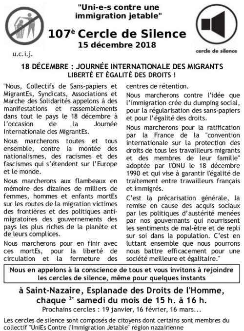 [UCIJ] 107ème cercle de silence : "18 décembre, journée internationale des migrants : justice et égalité des droits"